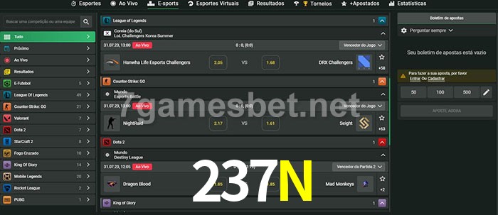 A aposta 237N oferece aos jogadores a experiência mais conveniente de apostas em eSports!